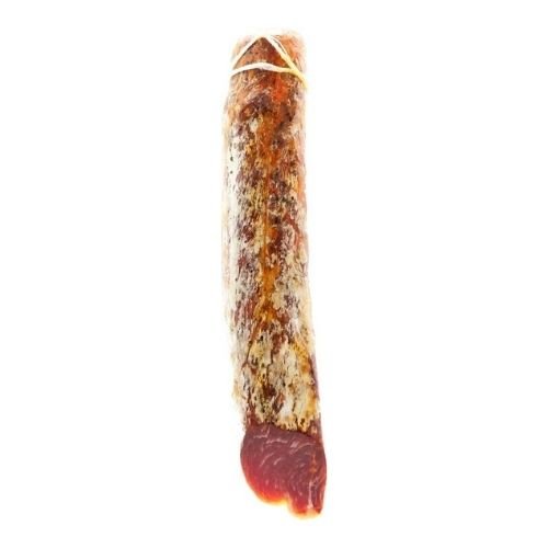 Pieza noble de lomo ibérico de bellota: aliño tradicional, corte firme y sabor fino.