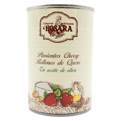 Estos pimientos cherry de Rosara combinan el dulzor natural del fruto con un relleno de queso suave y untuoso, todo cubierto con aceite de oliva que redondea el sabor. Son la tapa que desaparece primero: frescos, coloridos y con el punto justo de acidez.