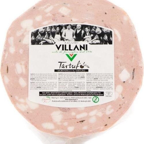 La Mortadela trufada Villani destaca por su miga fina y textura cremosa, con un perfume de trufa que aporta elegancia sin cubrir el carácter del embutido. Es perfecta para focaccias, tablas de aperitivo o como protagonista en un bocadillo sencillo y bien hecho.